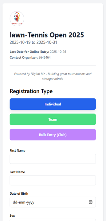 Once your tournament is successfully created, a unique link will be generated. This link can be distributed to participants to access the entry form.
