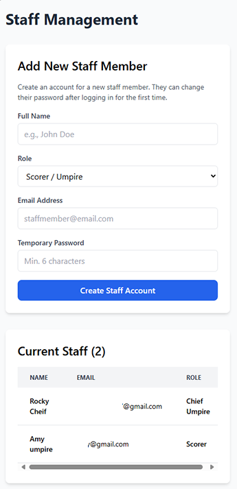 Now, build your team. Add your Chief Umpires and Scorers, giving them the exact permissions they need.