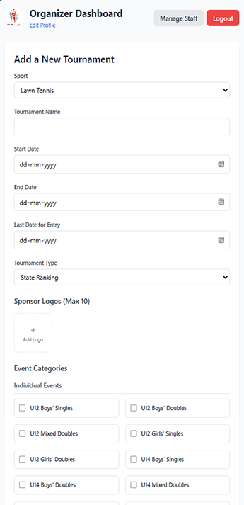 Organisers Dashboard: Add Your 1st Tournament
